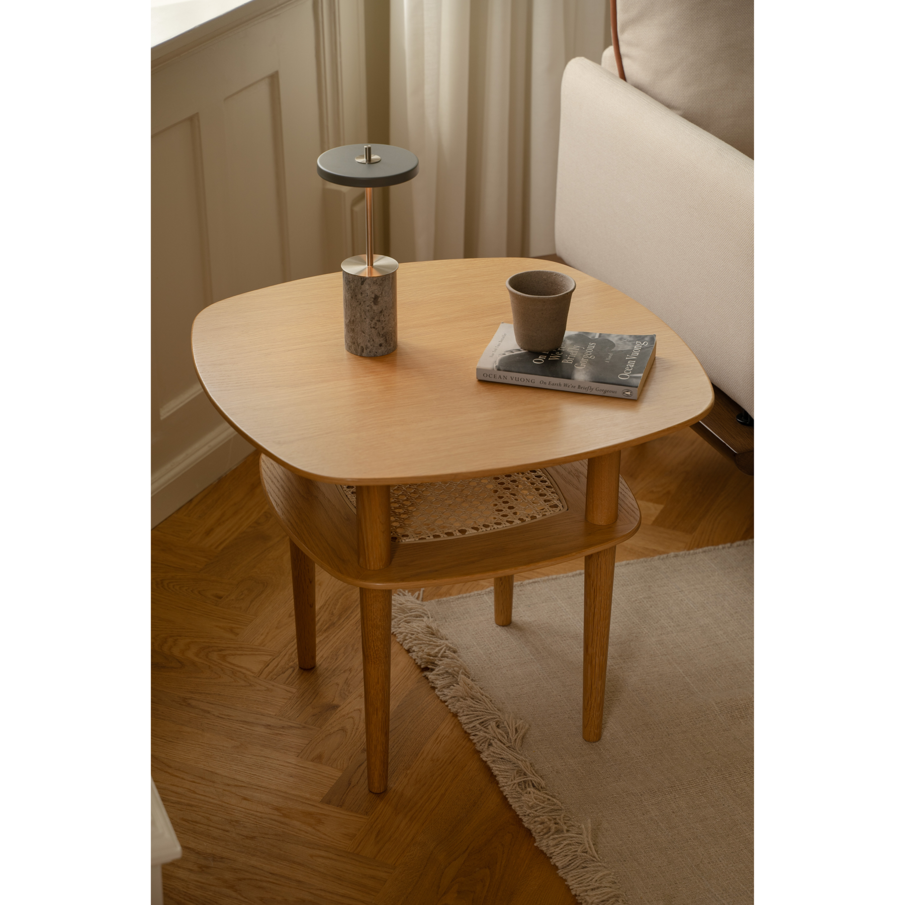 Modellen er udstyret med indbygget LED‑panel og fire lysniveauer, som gør det nemt at justere lyset fra blødt hygge‑ og stemningslys til mere funktionel belysning. Lampen har trådløs opladningsevne og batteridrift, hvilket giver frihed til at placere den, hvor du ønsker – uden fast ledning.