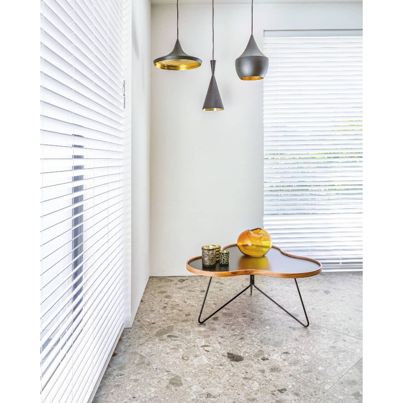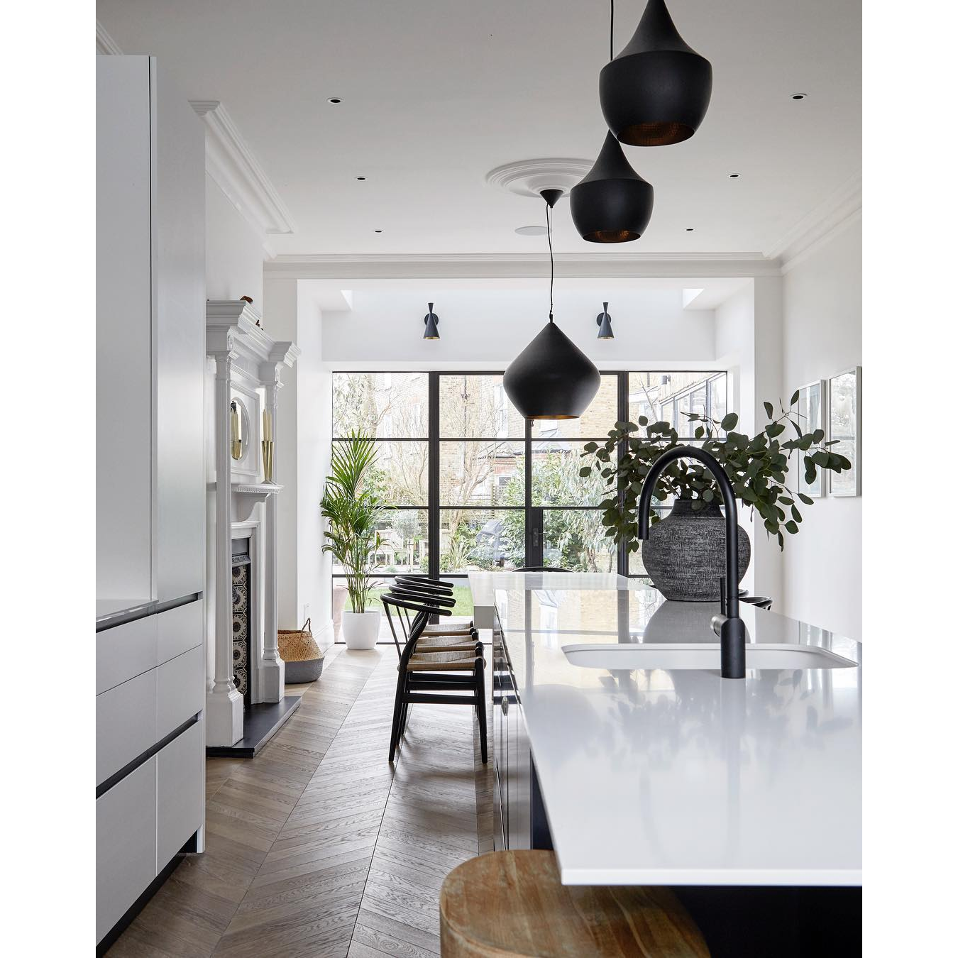 Tom Dixon Beat Fat Sort LED Pendel er en del af Beat-serien, der hylder det håndlavede håndværk og indiske traditioner. Lampens brede, flade form og sorte yderside kombineret med den messingfarvede inderside skaber et varmt og indbydende lys. Denne pendel er ideel til at tilføje et kunstnerisk og moderne touch til spiseborde, køkkenøer eller som statement-belysning i stuen.
