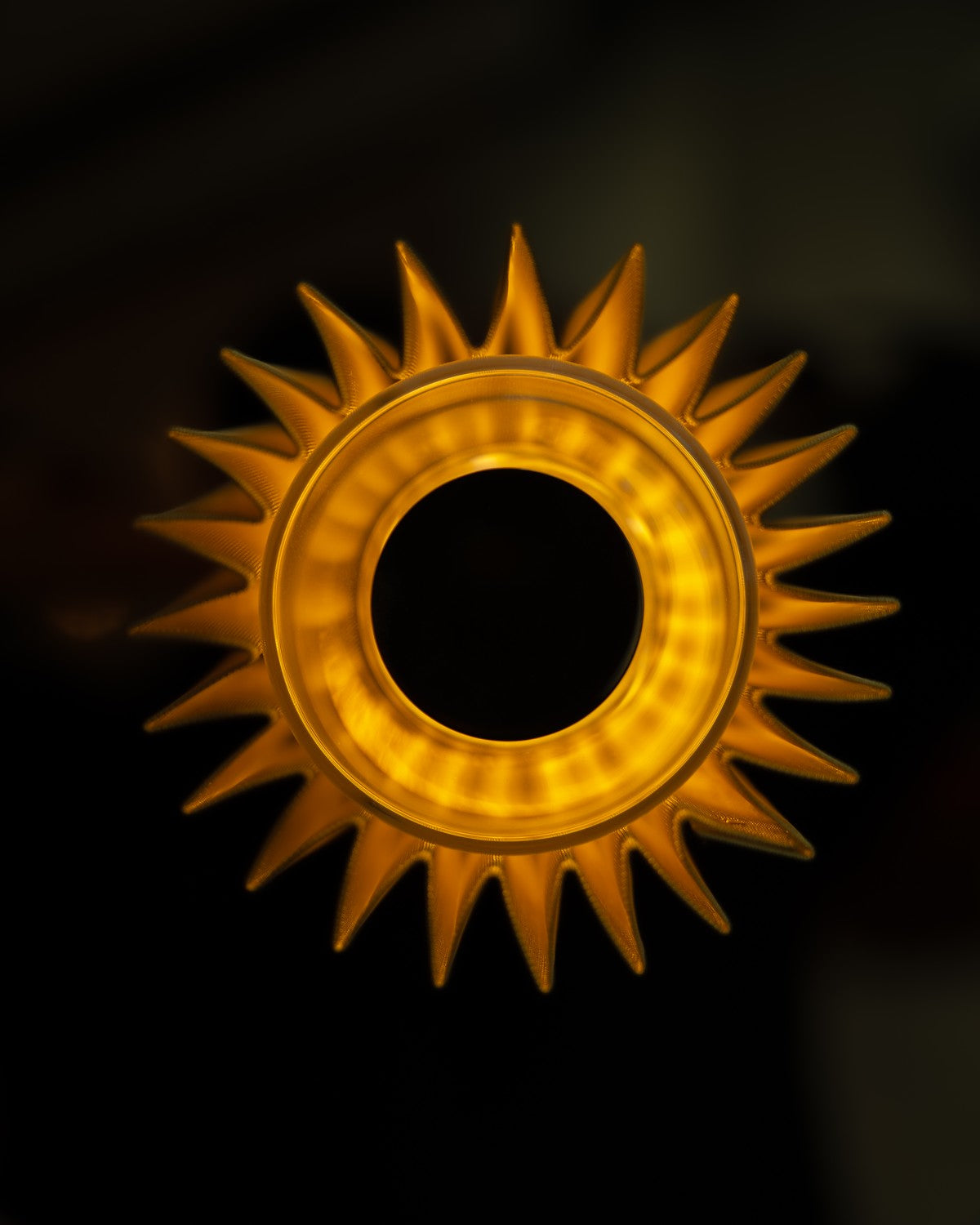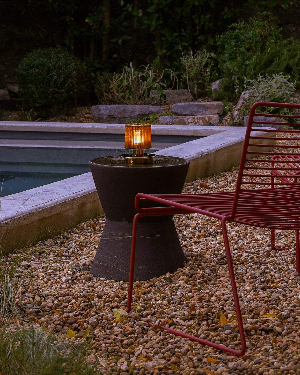 Den kompakte form betyder, at lampen kræver minimal plads men giver stor visuel effekt – især når lyset foldes ud gennem mesh-skærmen og skaber et stemningsfuldt lysfelt på bordfladen.