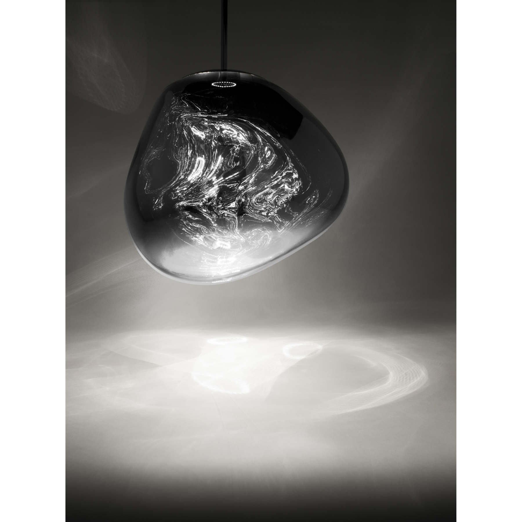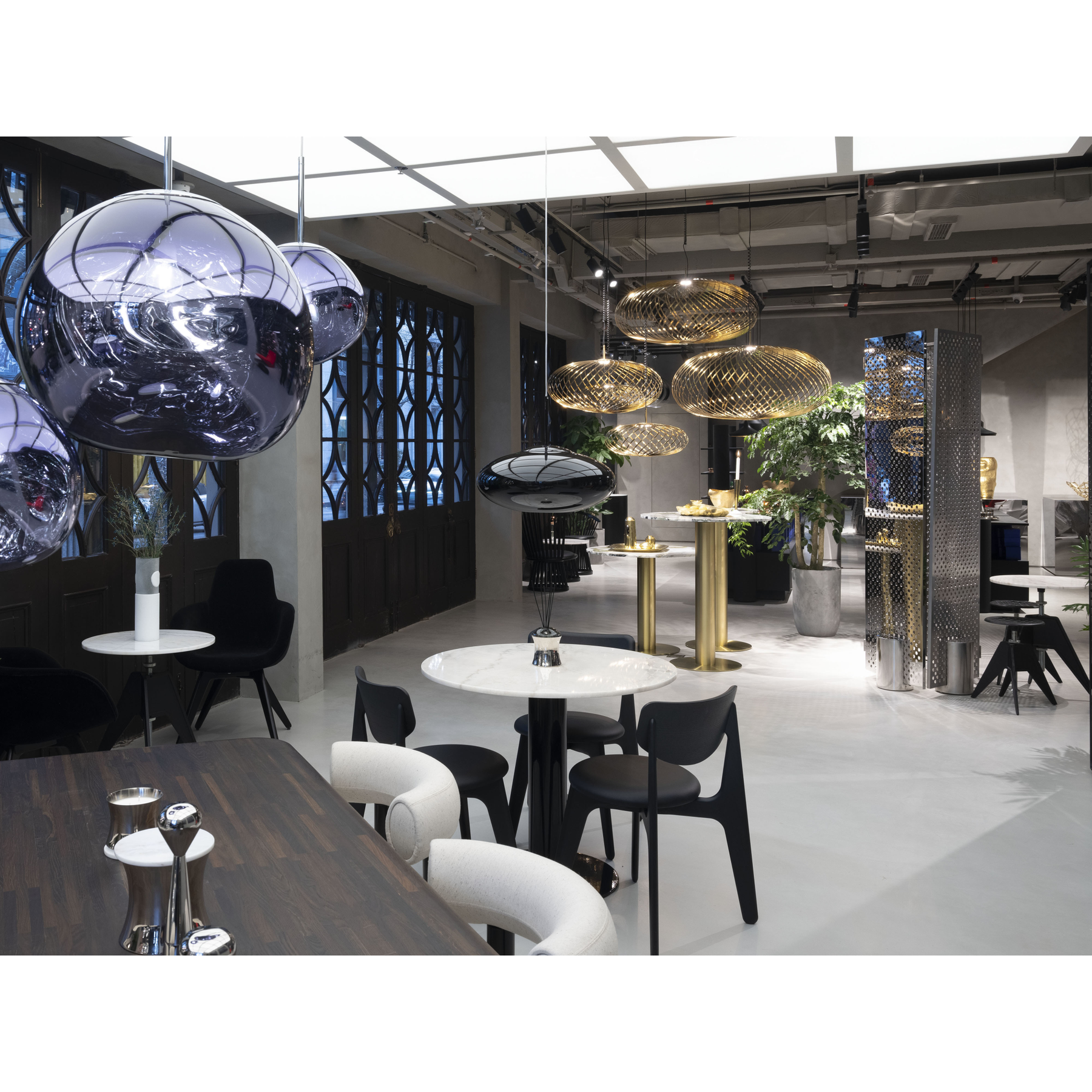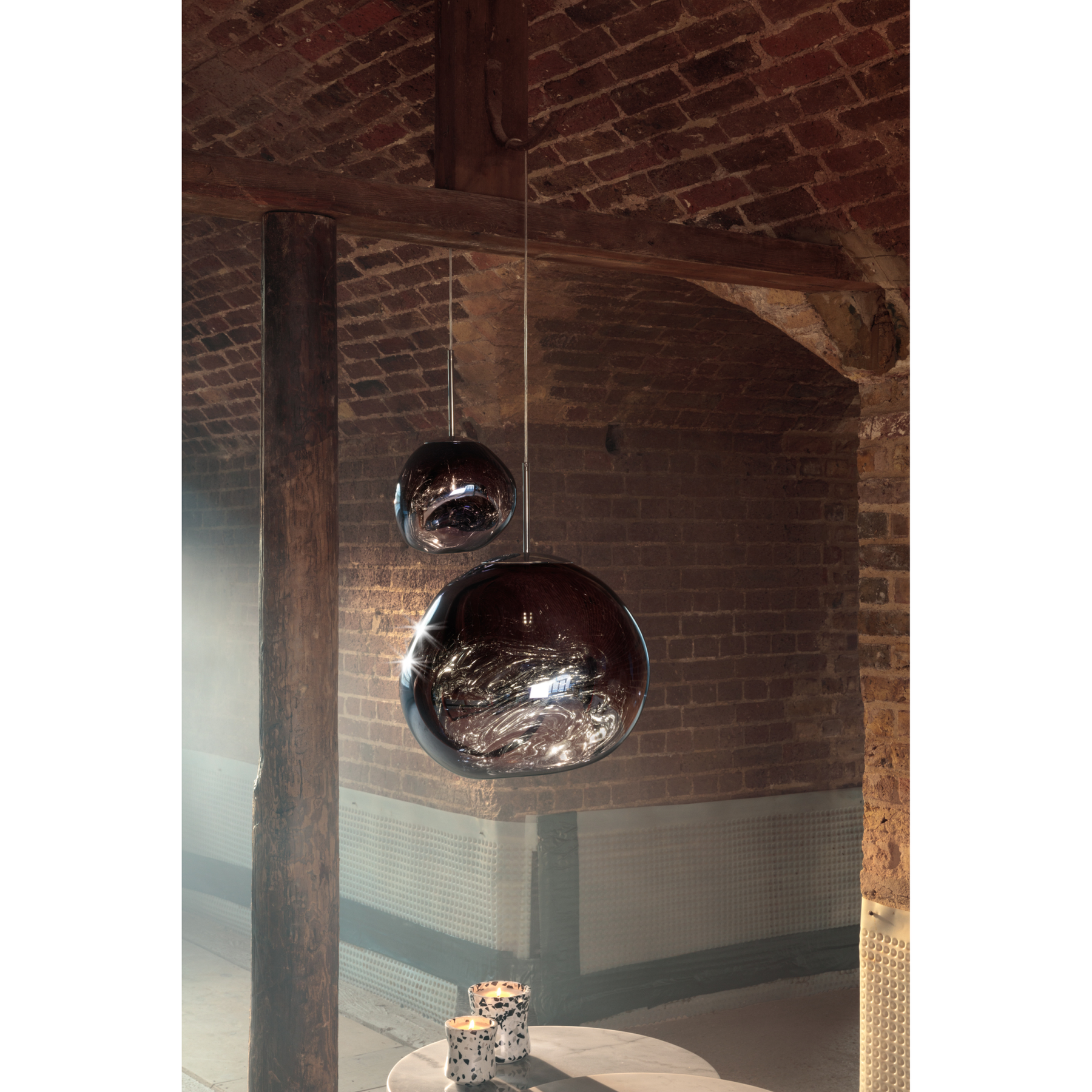 Tom Dixon Melt LED Ø50 pendel i røget finish kombinerer kunstnerisk udtryk med moderne belysningsteknologi. Lampen leverer en dramatisk atmosfære med sin spejlblanke overflade, der ved tændt lys skinner med varme og dybde. Den er perfekt til rum, hvor både æstetik og komfort skal spille sammen.