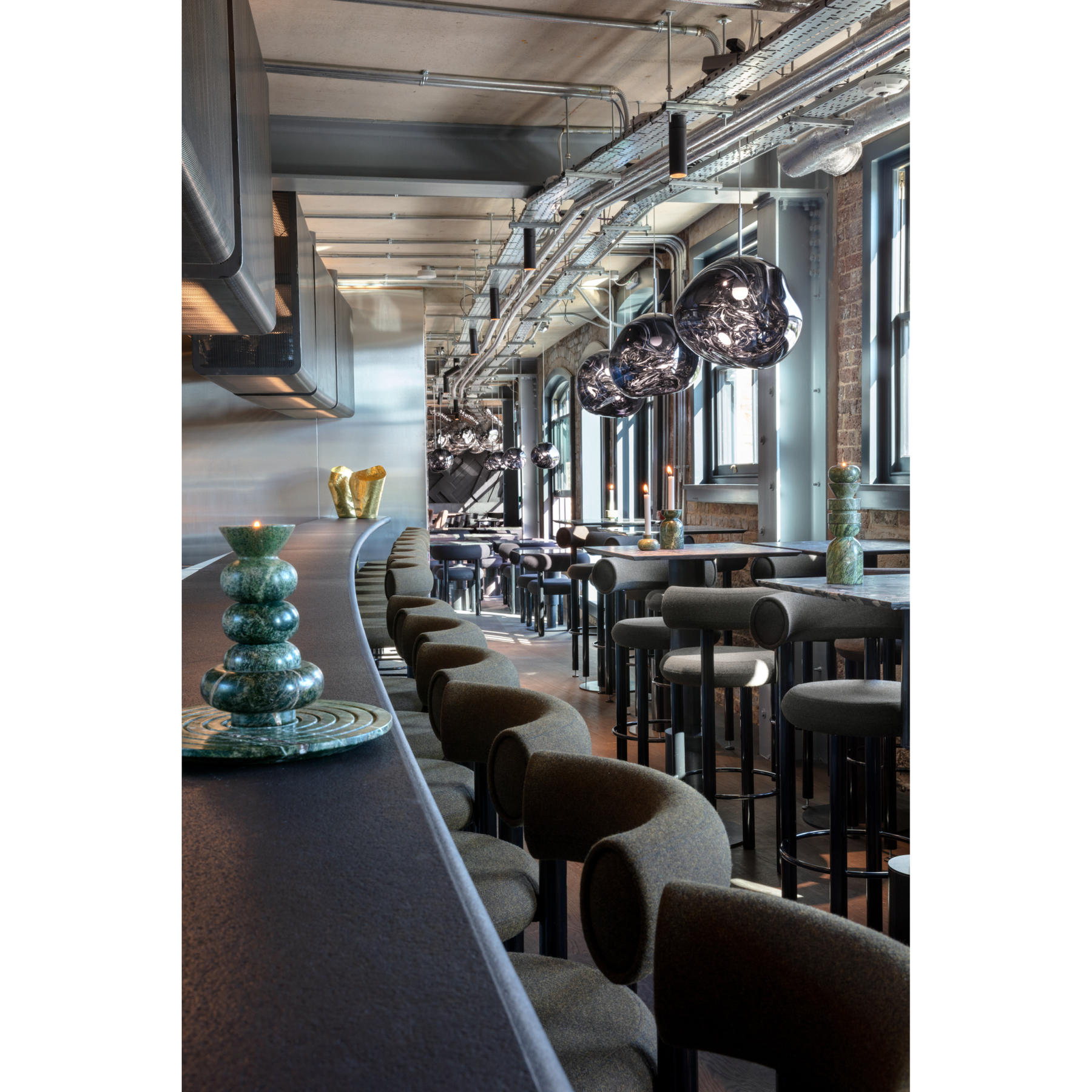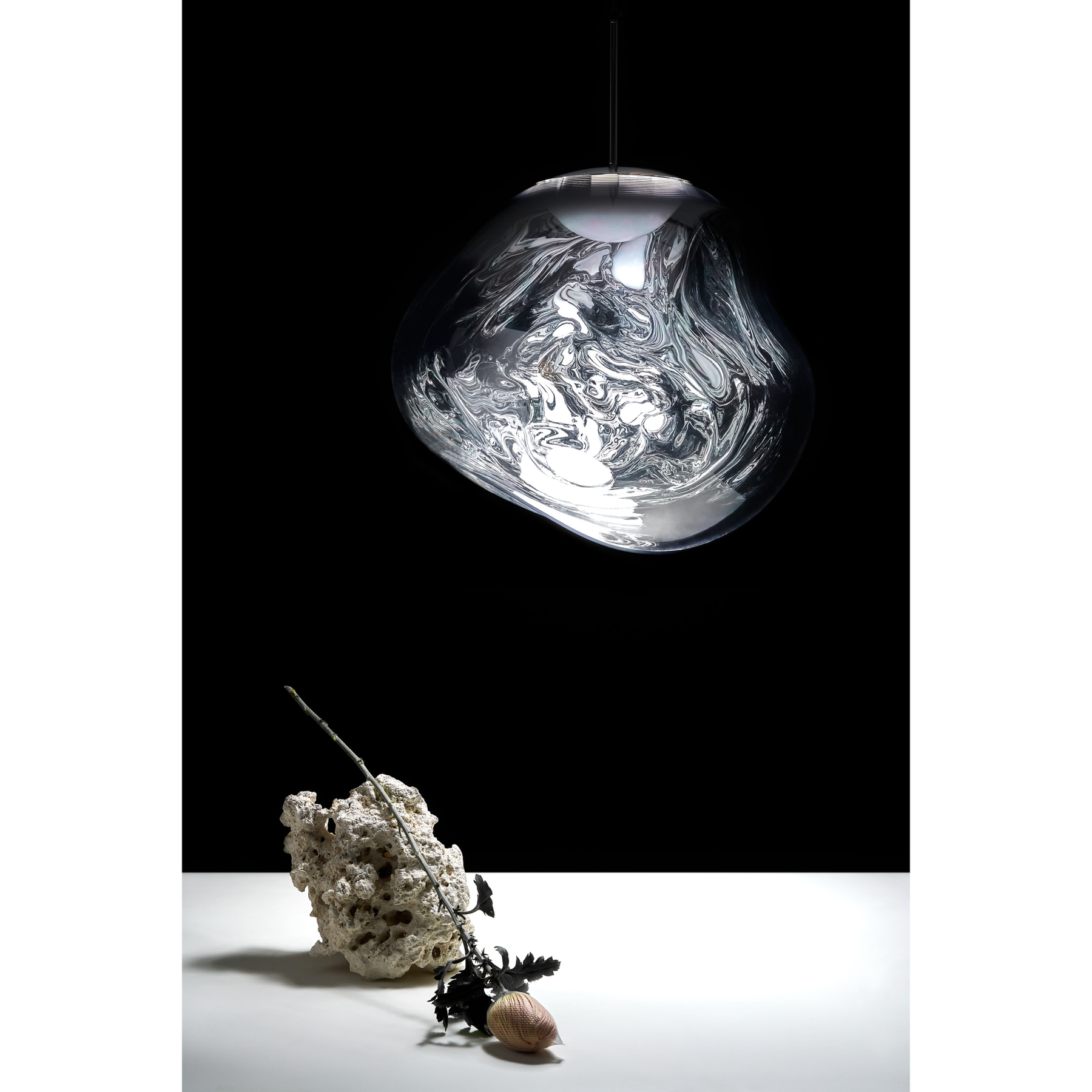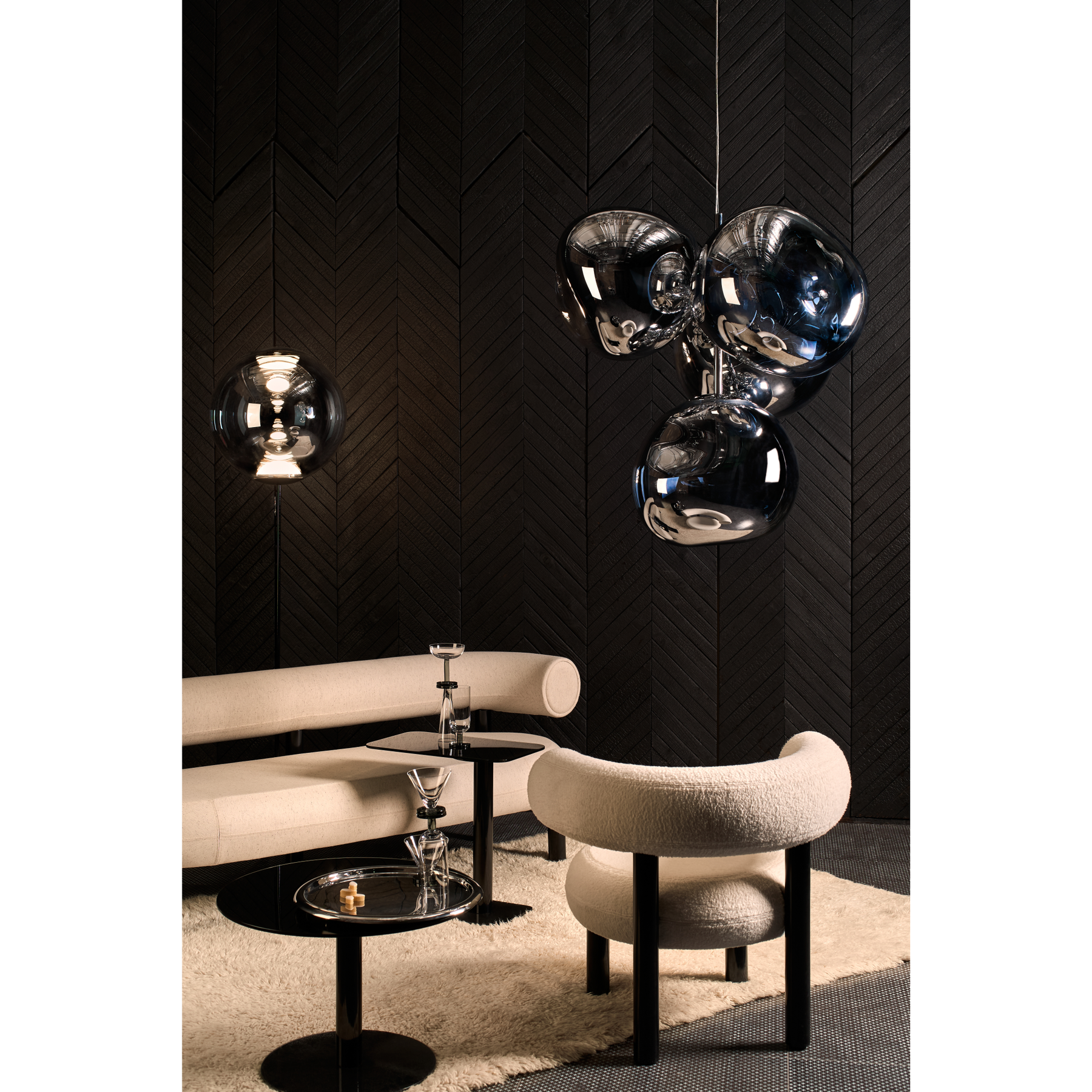 Tom Dixon Melt LED Ø50 pendel i røget finish kombinerer kunstnerisk udtryk med moderne belysningsteknologi. Lampen leverer en dramatisk atmosfære med sin spejlblanke overflade, der ved tændt lys skinner med varme og dybde. Den er perfekt til rum, hvor både æstetik og komfort skal spille sammen.