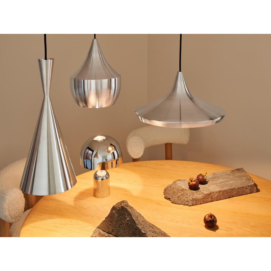 Beat Unbeaten Tall pendellampen er en videreudvikling af den klassiske BEAT lampe og fremstår med en mere sofistikeret finish. Fremstillet af hånddrejet og håndbørstet aluminium, giver denne lampe både stil og effektiv belysning. Med tykkere metal og forbedret lysoplevelse er den ideel til at tilføje elegance til et moderne eller traditionelt hjem.