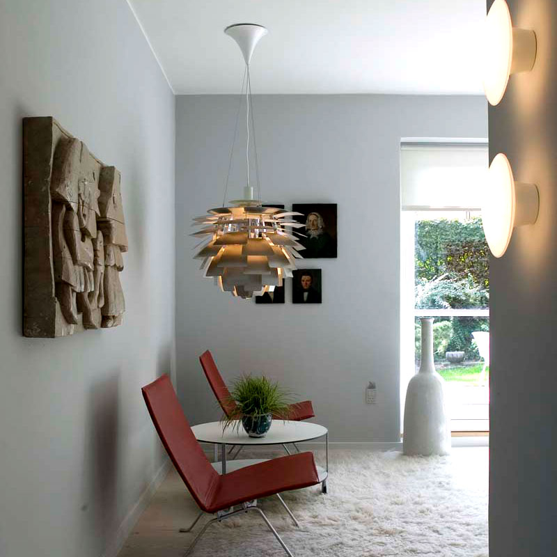 PH Kogle Ø480 er ideel til rum, hvor lampen kan få lov at træde frem – eksempelvis over spisebordet, i en hall eller i et større opholdsrum. Den skaber en stemning af eksklusivitet og tilføjer et kunstnerisk element til indretningen. Rustfrit stål-varianten giver et moderne, køligt udtryk, der matcher både minimalistiske hjem, klassisk interiør og stilrene erhvervslokaler.