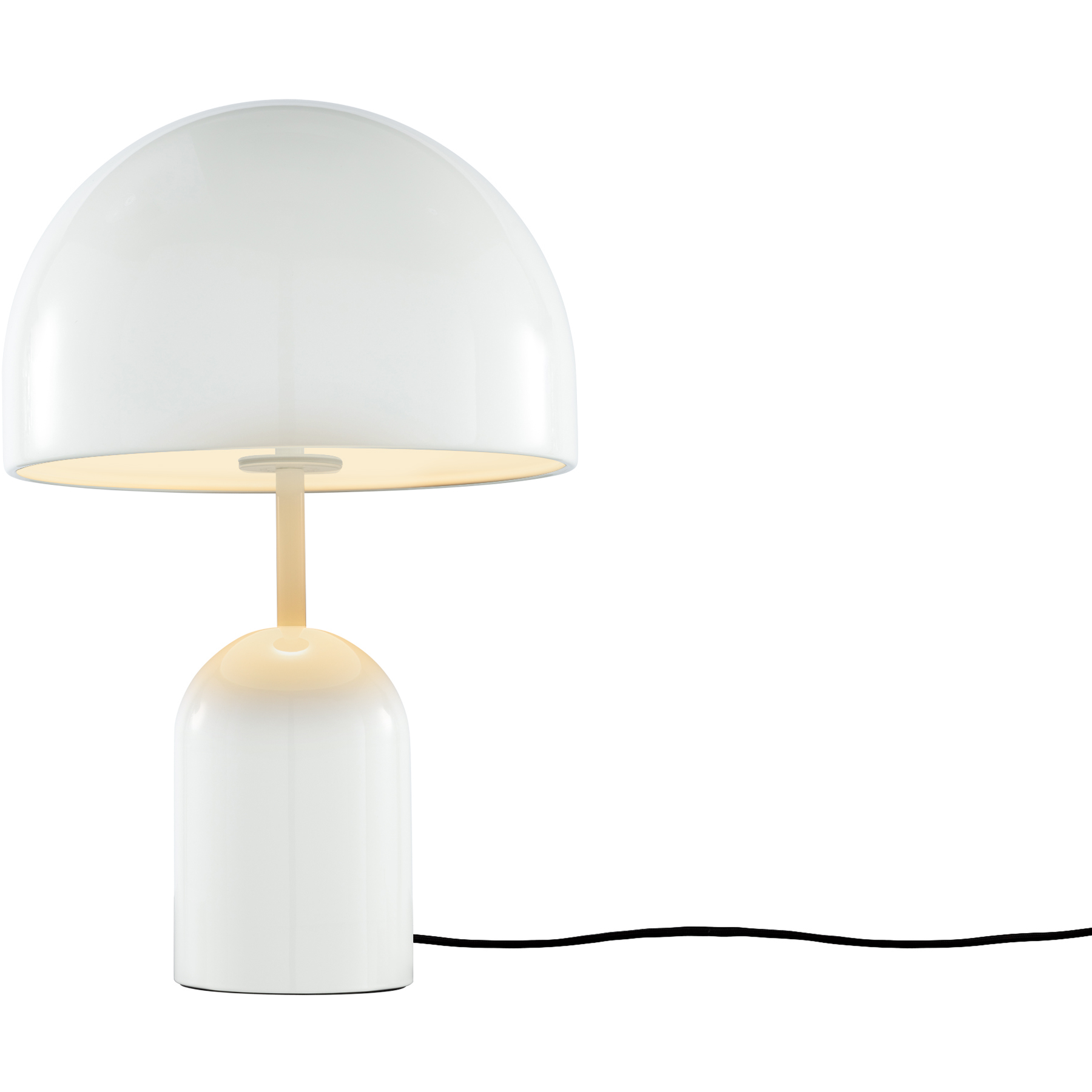 Bell bordlampen er fremstillet i presset stål med en smuk, hvid højglansfinish, der reflekterer omgivelserne og skaber et levende udtryk. Det minimalistiske design får lampen til at fremstå som en samlet, flydende form, hvor base og skærm smelter sammen. Resultatet er et luksuriøst og tidløst look, der passer ind i enhver moderne indretning.