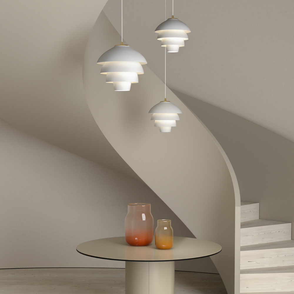 Belid Valencia Ø42 Pendel kombinerer skandinavisk enkelhed med international elegance. Den organiske form og det bløde lys skaber en harmonisk atmosfære, der løfter ethvert rum. Lampens matte hvide skærme i kombination med den håndslebet messingfod giver et sofistikeret udtryk, der passer perfekt ind i både moderne og klassiske indretninger.