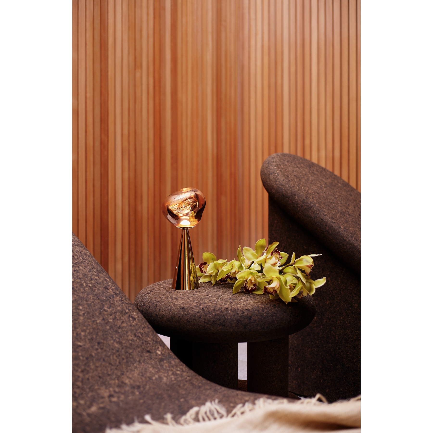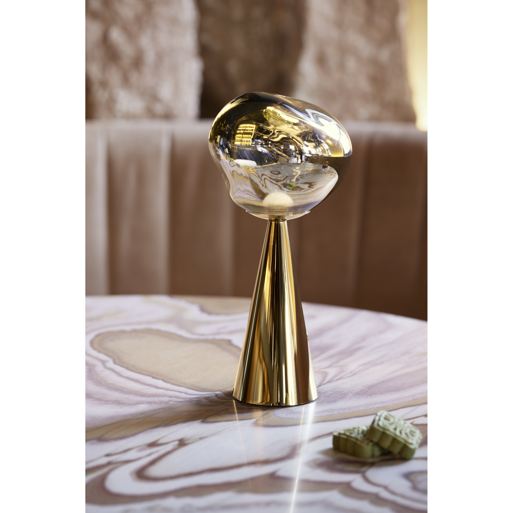 Tom Dixon Melt Portable LED bordlampe i guld – skulpturel belysning i luksuriøs finish