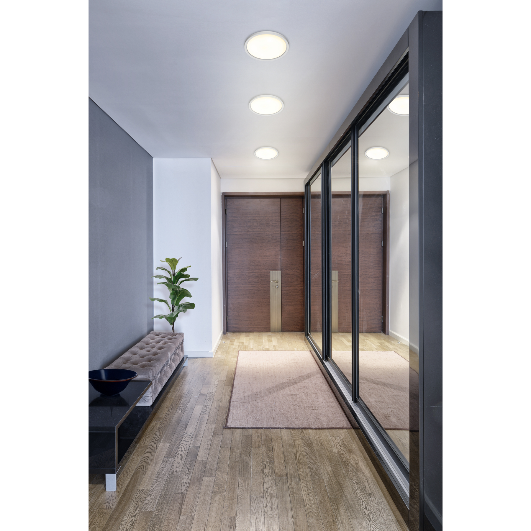 – En rund profil med Ø 30 cm gør den velegnet til loft­er med begrænset højde eller steder hvor man ønsker diskret belysning.
