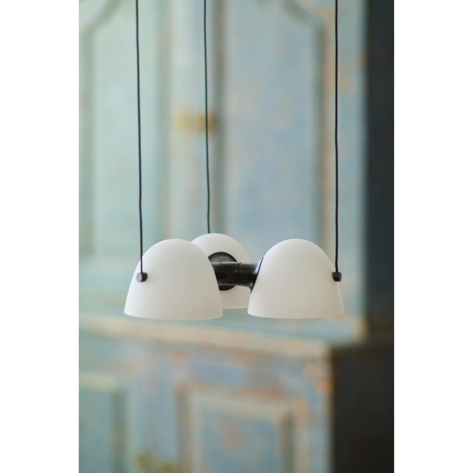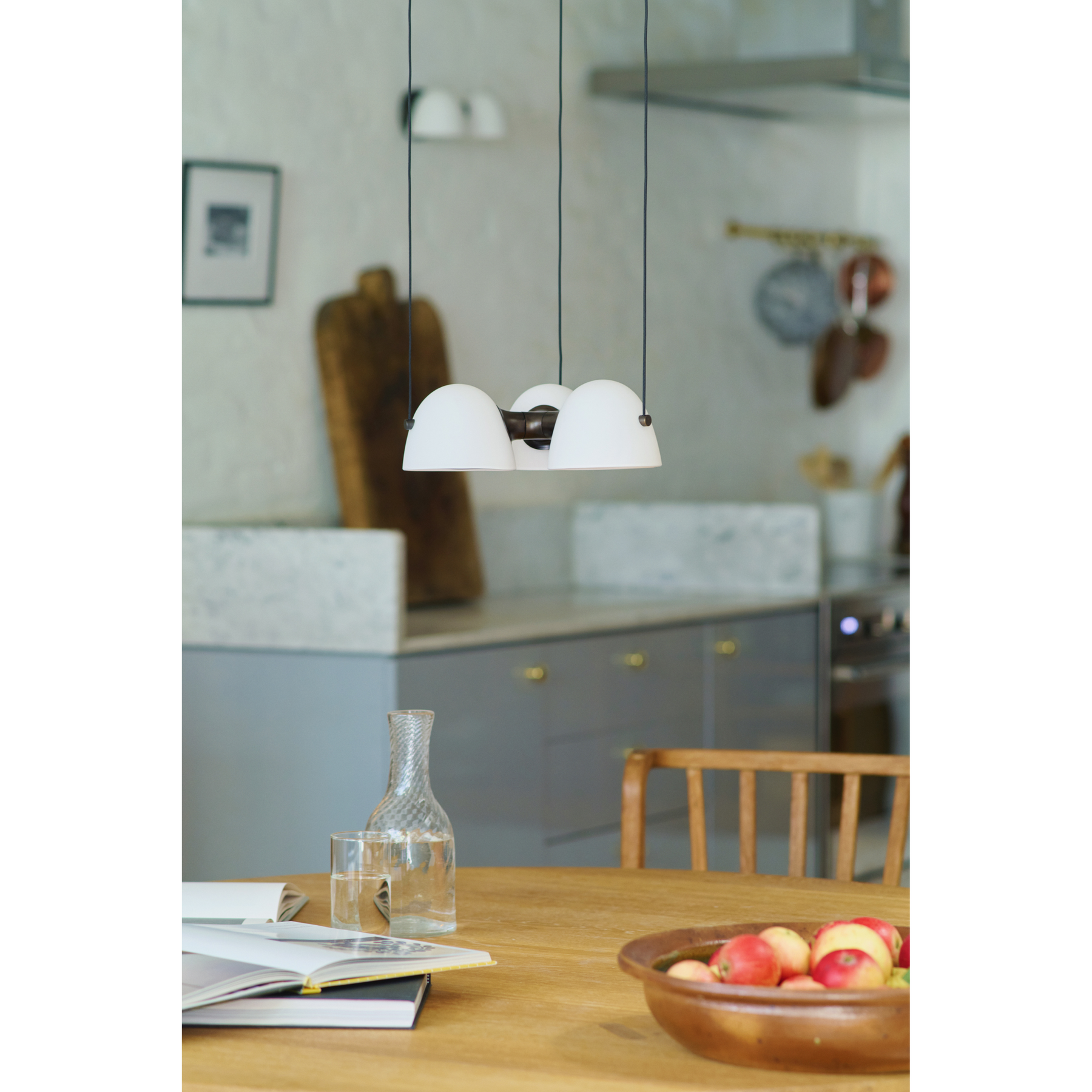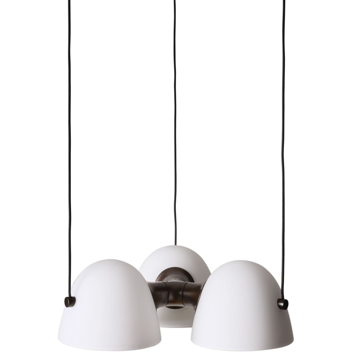 • Den tredelte pendel giver bredere lysudbredelse end en enkel pendel — praktisk til større borde eller rum, hvor lys skal fordeles jævnt.