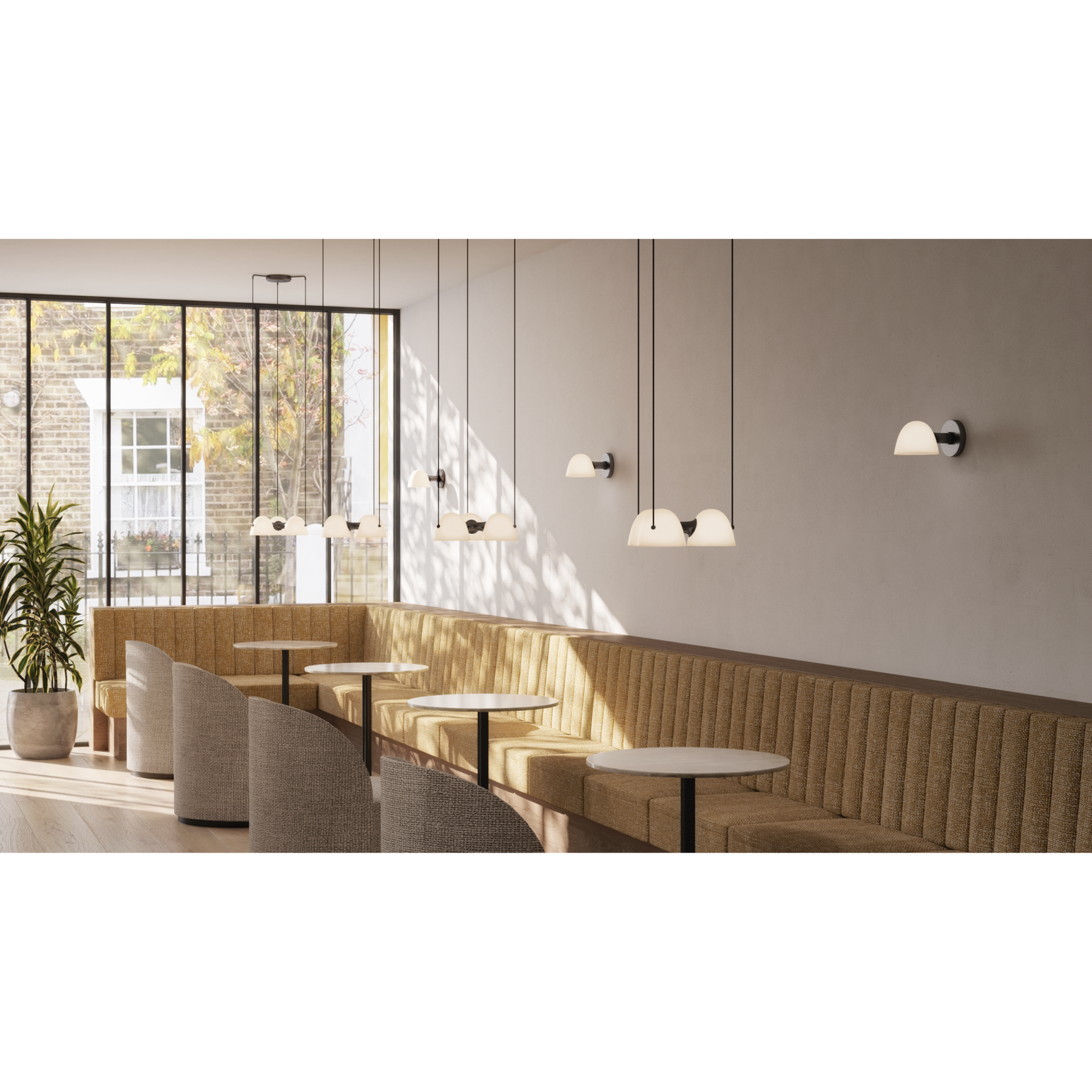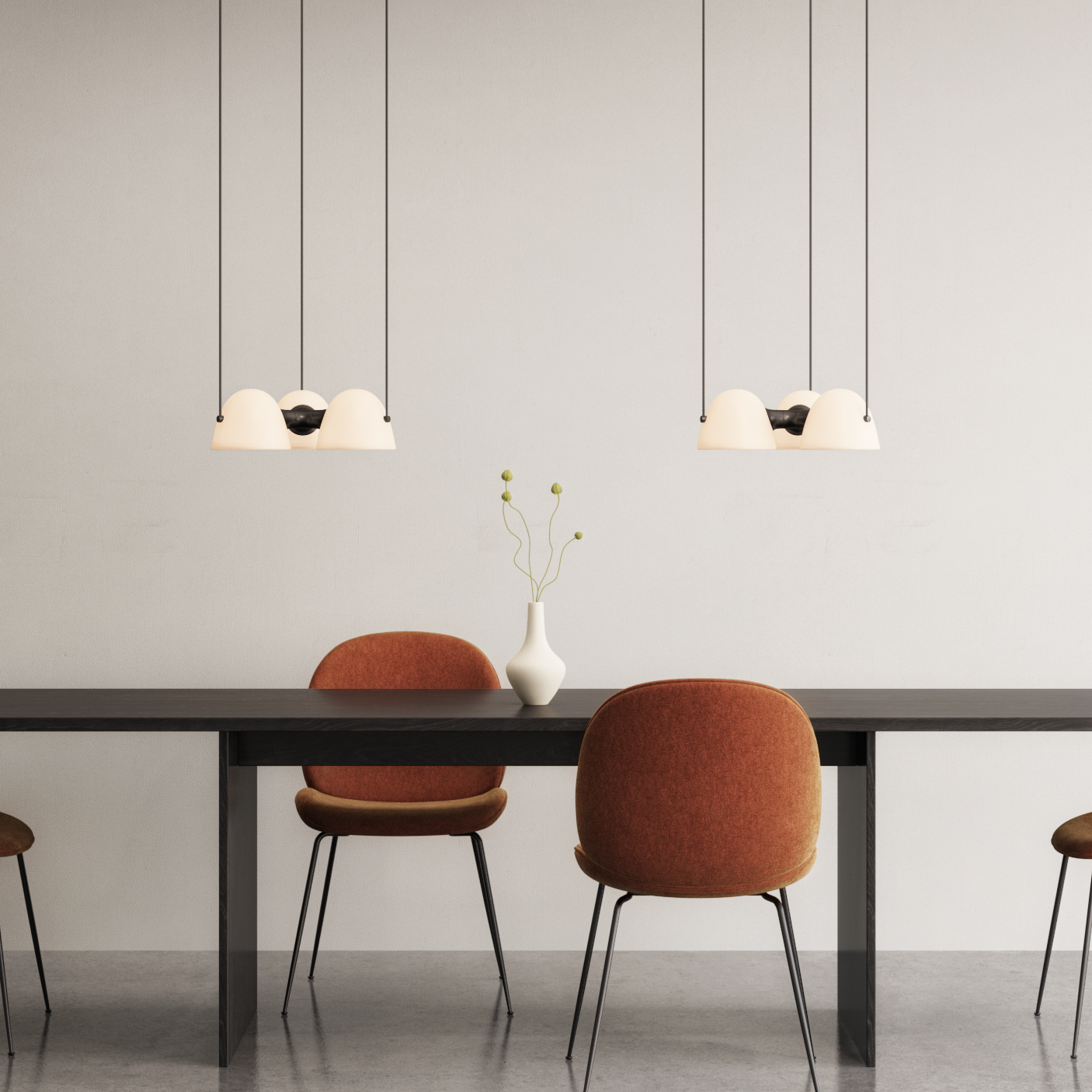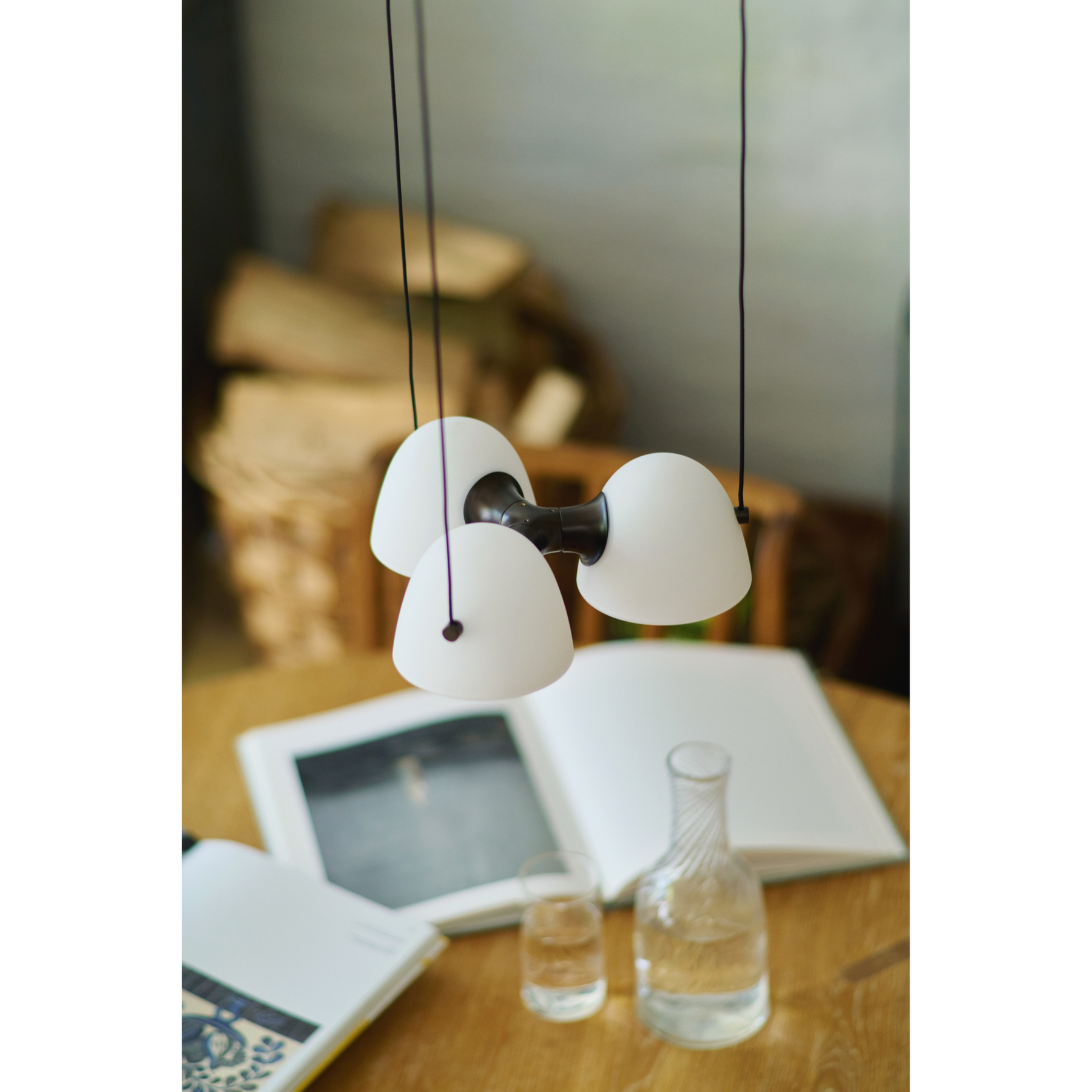 Fuse Triple pendel egner sig særligt godt over spisebordet, køkkenøen eller et stort bord i stuen, hvor man ønsker et blødt, diffuseret lys uden skarpe skygger. Den er også oplagt i åbne køkken-alrum eller over lange borde, hvor de tre lyskilder sikrer god og jævn belysning. Materialernes varme og det bløde glaslys skaber en hyggelig, imødekommende atmosfære — perfekt til middage, samvær og afslapning. I et moderne såvel som klassisk indrettet hjem fungerer lampen som både funktionel belysning og som et elegant designelement.