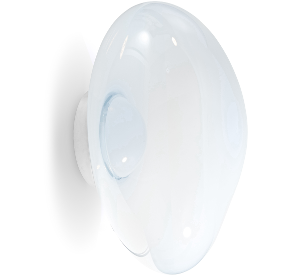 Denne væglampe er perfekt til ophæng over spiseborde, i stuer eller som accentbelysning i gangarealer. Den opalescerende sølvfinish tilføjer et strejf af luksus og elegance til indretningen.