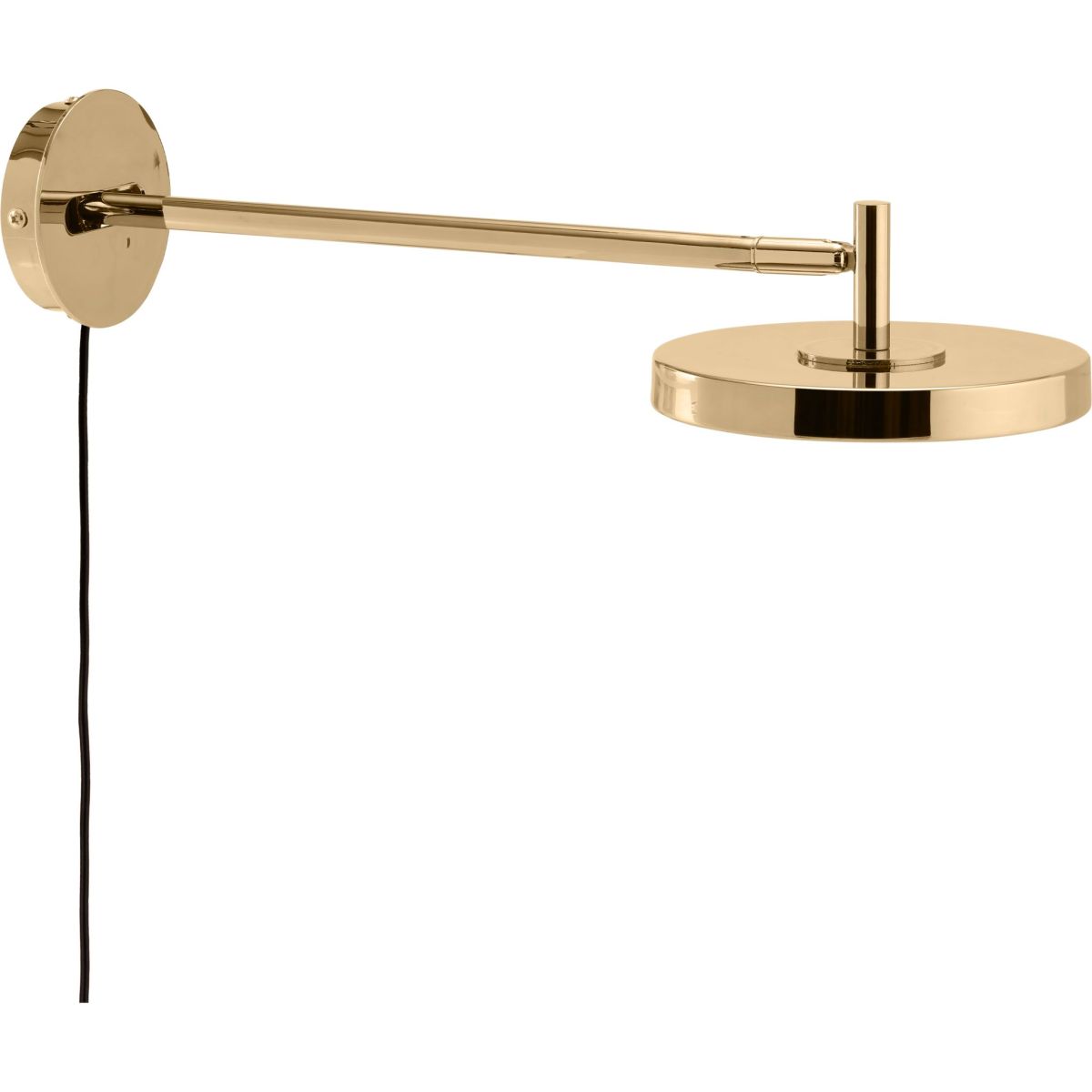 UMAGE Asteria Lang Væglampe i varm messingfinish kombinerer moderne skandinavisk minimalisme med stor fleksibilitet. Den lange arm giver bevægelsesfrihed og gør lampen ideel som læse- eller stemningsbelysning, hvorfor den passer perfekt til stue, gang eller soveværelse.