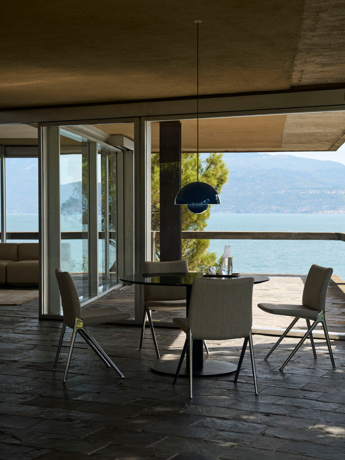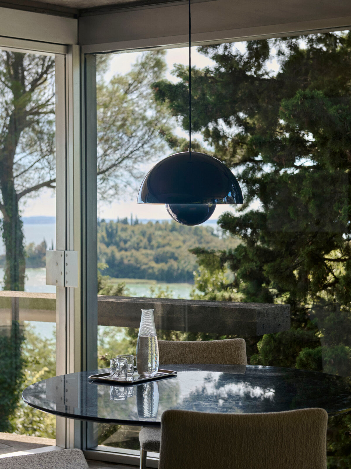 Pendlen er fremstillet i pulverlakeret metal med en mat finish i Steel Blue. Designet består af de karakteristiske, dobbelte halvkugler, som sikrer en jævn og blændfri lysfordeling. Med sin afbalancerede størrelse fremstår Flowerpot VP7 markant uden at virke dominerende og passer naturligt ind i både moderne og klassiske indretninger.